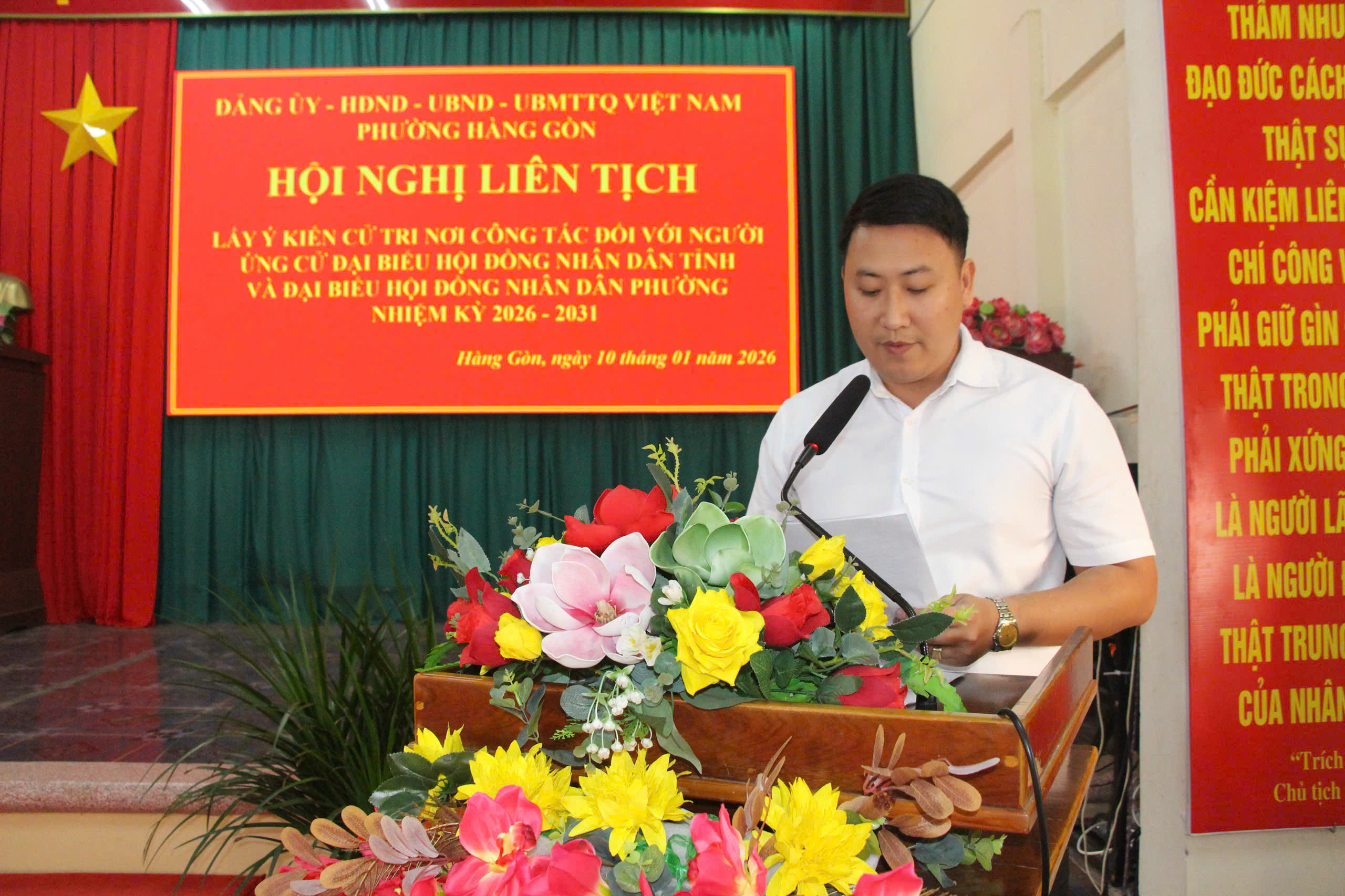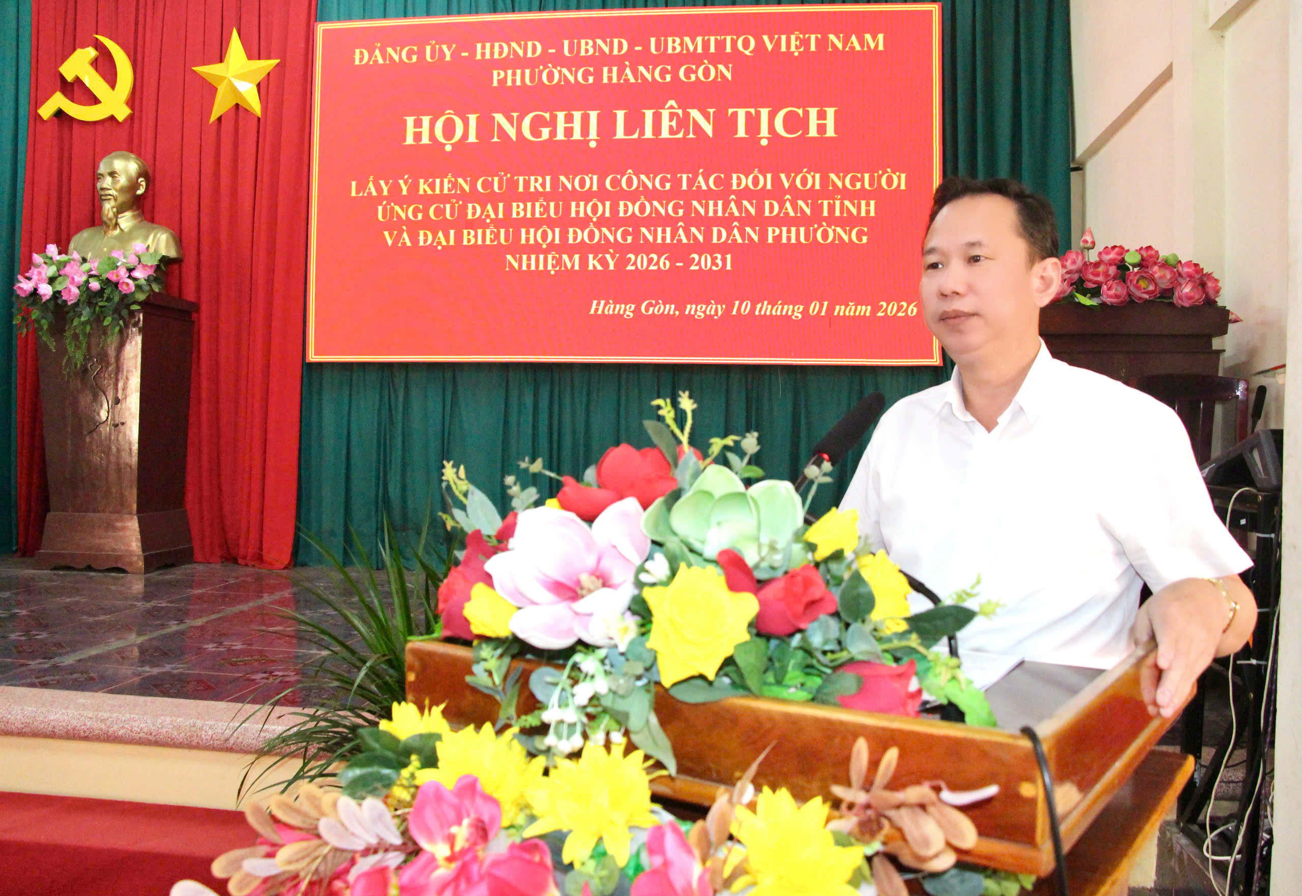 Sáng ngày 10/01, Đảng ủy - HĐND - UBND - UBMTTQ Việt Nam phường Hàng Gòn tổ chức Hội nghị lấy ý kiến cử tri nơi công tác đối với những người được giới thiệu ứng cử đại biểu HĐND tỉnh và đại biểu HĐND phường, nhiệm kỳ 2026 - 2031 tại hội trường Đảng ủy phường.