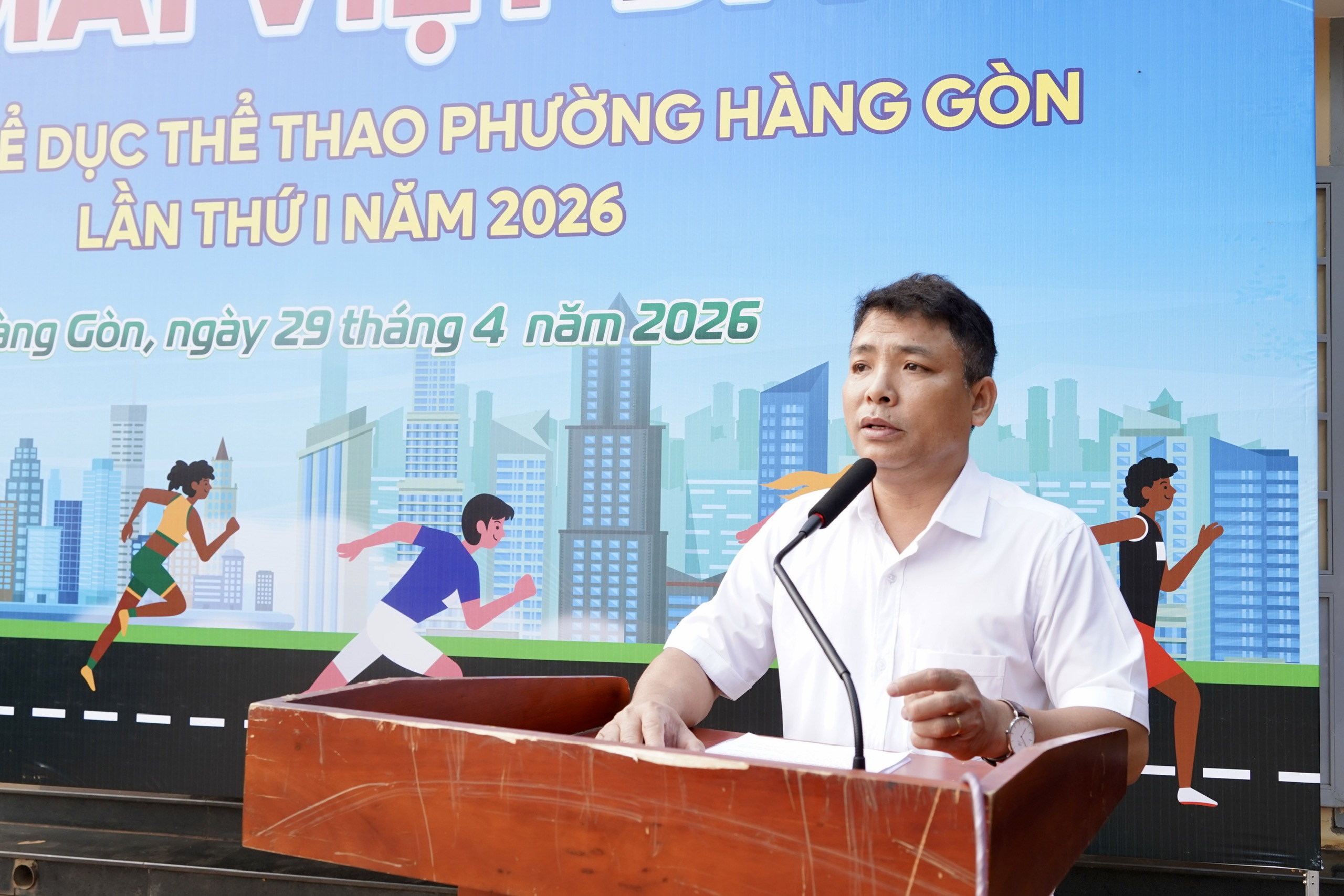 <div class="x14z9mp xat24cr x1lziwak x1vvkbs xtlvy1s x126k92a"><figure class="image"><img style="aspect-ratio:2560/1707;" src="https://hanggon.dongnai.gov.vn/uploads/hanggon/news/2026_04/z7774175099863_35661db27ad3b21f84561dd67e621944.jpg" width="2560" height="1707" /></figure><div style="text-align:justify;" dir="auto"><span class="x193iq5w xeuugli x13faqbe x1vvkbs x1xmvt09 x1lliihq x1s928wv xhkezso x1gmr53x x1cpjm7i x1fgarty x1943h6x xudqn12 x3x7a5m x6prxxf xvq8zen xo1l8bm xzsf02u x1yc453h" dir="auto">Dự Lễ khai mạc có ông Phạm Văn Châu - Đảng ủy viên, PCT UBND phường, Trưởng Ban Tổ chức Đại hội TDTT; các ông, bà thành viên Ban Tổ chức Đại hội TDTT; các ban ngành đoàn thể; đại diện các cơ quan, đơn vị.</span></div></div><div class="x14z9mp xat24cr x1lziwak x1vvkbs xtlvy1s x126k92a"><figure class="image"><img style="aspect-ratio:2560/1707;" src="https://hanggon.dongnai.gov.vn/uploads/hanggon/news/2026_04/z7774175782769_206dd95824fdf0e847560e48a63a0772.jpg" width="2560" height="1707" /></figure><div style="text-align:justify;" dir="auto"><span class="x193iq5w xeuugli x13faqbe x1vvkbs x1xmvt09 x1lliihq x1s928wv xhkezso x1gmr53x x1cpjm7i x1fgarty x1943h6x xudqn12 x3x7a5m x6prxxf xvq8zen xo1l8bm xzsf02u x1yc453h" dir="auto">Giải chạy được tổ chức với điểm xuất phát tại khu vực Trụ sở Ban Chỉ huy Quân sự phường Hàng Gòn, các vận động viên thi đấu theo độ tuổi, cự li do Ban Tổ chức quy định. Đây là một trong những nội dung thi đấu quan trọng của Đại hội, góp phần tạo không khí thi đua sôi nổi, thúc đẩy phong trào rèn luyện thể dục thể thao trong quần chúng Nhân dân.</span></div></div><div class="x14z9mp xat24cr x1lziwak x1vvkbs xtlvy1s x126k92a"><figure class="image"><img style="aspect-ratio:2560/1707;" src="https://hanggon.dongnai.gov.vn/uploads/hanggon/news/2026_04/z7774176343744_a4c9da36f797aa4b77b4487164879d65_1.jpg" width="2560" height="1707" /></figure><div style="text-align:justify;" dir="auto"><span class="x193iq5w xeuugli x13faqbe x1vvkbs x1xmvt09 x1lliihq x1s928wv xhkezso x1gmr53x x1cpjm7i x1fgarty x1943h6x xudqn12 x3x7a5m x6prxxf xvq8zen xo1l8bm xzsf02u x1yc453h" dir="auto">Ngay từ sáng sớm, công tác tổ chức đã được chuẩn bị chu đáo, đảm bảo an toàn, trật tự và điều kiện thi đấu tốt nhất cho các vận động viên. Các lực lượng chức năng phối hợp điều tiết giao thông, đảm bảo an ninh trật tự trên toàn tuyến đường chạy. Các vận động viên thi đấu với tinh thần đoàn kết, trung thực, hết mình với quyết tâm đạt thành tích cao.</span></div><figure class="image"><img /></figure><figure class="image"><img src="https://hanggon.dongnai.gov.vn/uploads/hanggon/news/2026_04/z7774176437486_27368044193cf75ae6dead215450cc67_2.jpg" /></figure><div style="text-align:justify;" dir="auto"><span class="x193iq5w xeuugli x13faqbe x1vvkbs x1xmvt09 x1lliihq x1s928wv xhkezso x1gmr53x x1cpjm7i x1fgarty x1943h6x xudqn12 x3x7a5m x6prxxf xvq8zen xo1l8bm xzsf02u x1yc453h" dir="auto">Giải Việt dã không chỉ là hoạt động thể thao ý nghĩa mà còn góp phần lan tỏa phong trào “Toàn dân rèn luyện thân thể theo gương Bác Hồ vĩ đại”, nâng cao sức khỏe, đời sống tinh thần cho Nhân dân, hướng tới xây dựng phường Hàng Gòn ngày càng văn minh, phát triển.</span></div></div>