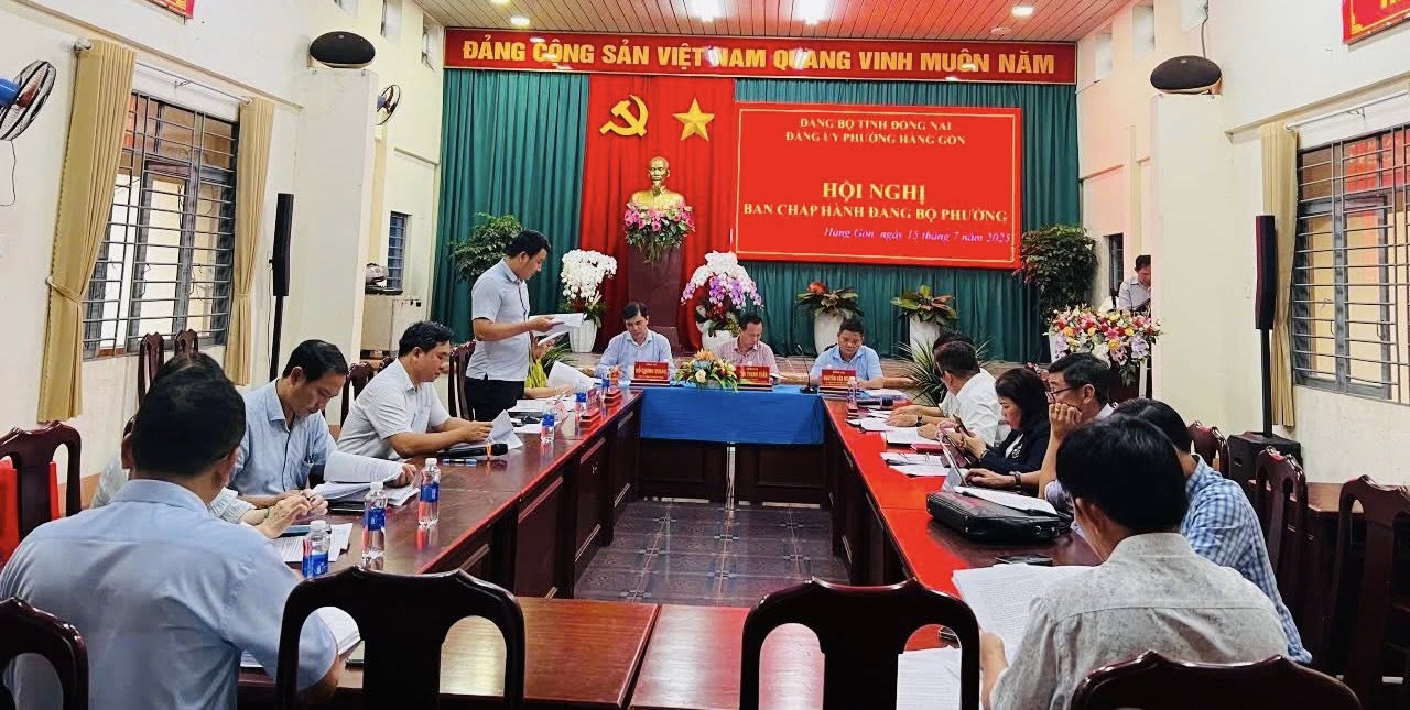 Chiều 15/7, Ban chấp hành Đảng bộ phường Hàng Gòn tổ chức hội nghị thông qua Chương trình làm việc của Ban chấp hành, lấy ý kiến về Quy chế làm việc của Đảng ủy phường nhiệm kỳ 2025- 2030, thông qua Dự thảo Báo cáo Chính trị lần thứ tư, Dự thảo lần thứ ba Báo cáo kiểm điểm của Ban chấp hành Đảng bộ nhiệm kỳ 2020-2025 tại hội trường Đảng ủy phường.