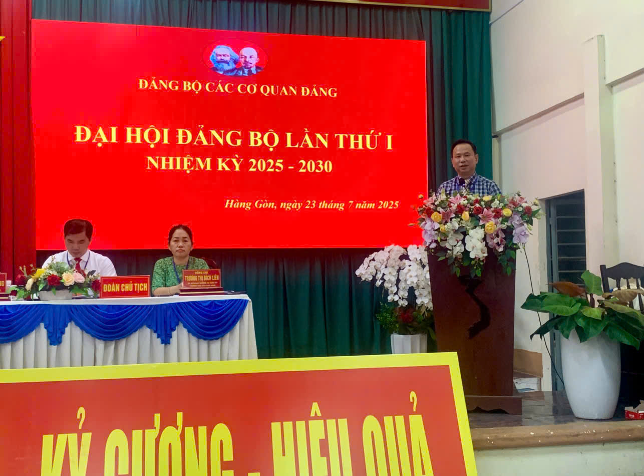 Từ khi thành lập đến nay, Đảng bộ các Cơ quan Đảng phường Hàng Gòn đã nhanh chóng ổn định tổ chức, thực hiện nghiêm túc các nhiệm vụ chính trị và đạt kết quả bước đầu tích cực. Công tác xây dựng Đảng về chính trị, tư tưởng, đạo đức được chú trọng, góp phần nâng cao bản lĩnh chính trị của cấp ủy và đảng viên. Việc sắp xếp tổ chức, bộ máy hệ thống chính trị được triển khai khẩn trương, đạt yêu cầu. Công tác cán bộ được thực hiện công khai, dân chủ, chặt chẽ và khách quan. Mặt trận Tổ quốc và các tổ chức chính trị - xã hội phát huy tốt vai trò, góp phần củng cố khối đại đoàn kết toàn dân và tăng cường mối quan hệ giữa Đảng với Nhân dân. Cấp ủy tiếp tục đổi mới phương thức lãnh đạo, đẩy mạnh cải cách hành chính gắn với ứng dụng công nghệ thông tin.Quang cảnh Đại hội Đảng bộ các cơ quan Đảng phường Hàng GònĐồng chí Nông Thanh Tuấn - Bí thư Đảng ủy, Chủ tịch HĐND phường phát biểu tại Đại hội với tinh thần quyết tâm cao độ và những hành động cụ thể đồng chí tin tưởng rằng, dưới sự lãnh đạo trực tiếp của Đảng bộ phường, Đảng ủy phường các cơ quan Đảng sẽ phát huy được vai trò là hạt nhân nòng cốt trong các cơ quan tham mưu giúp việc của Đảng bộ phường, Ban Chấp hành đảng bộ các cơ quan Đảng sẽ không chỉ hoàn thành mà còn vượt các chỉ tiêu, nhiệm vụ mà Đại hội đã đề ra cho nhiệm kỳ 2025 - 2030, góp phần xây dựng phường Hàng Gòn ngày càng phát triển đóng góp vào nhiệm vụ chung thắng lợi của toàn Đảng bộ phường trong nhiệm kỳ mới.