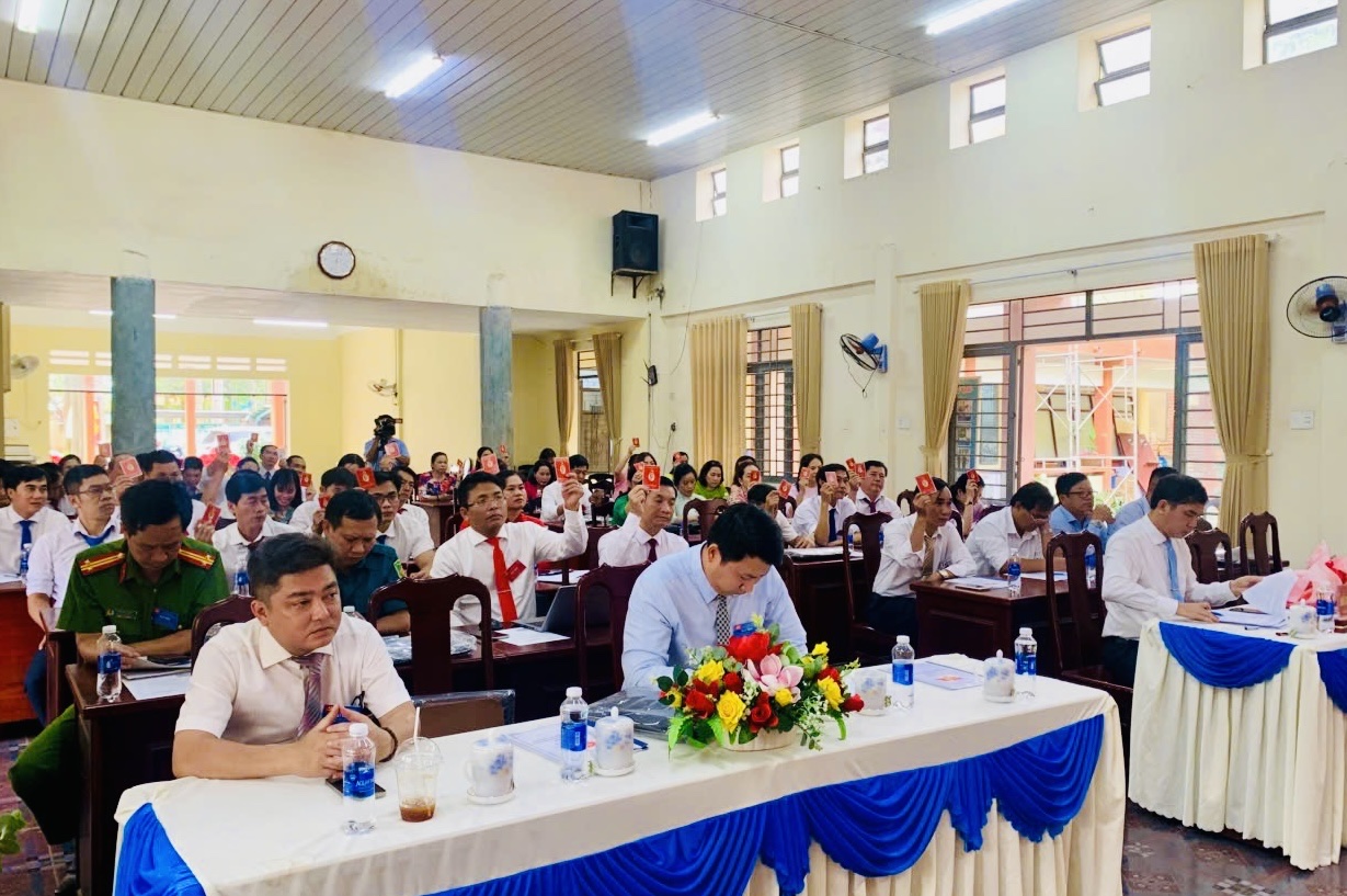 100% đại biểu có mặt tại Đại hội nhất trí thông qua Nghị quyết Đại hội Đảng bộ cơ sở UBND phường Hàng Gòn lần thứ I, nhiệm kỳ 2025- 2030.
